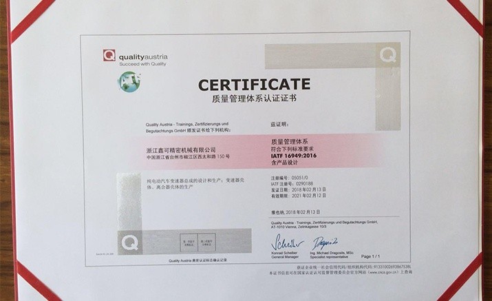 The company was established on August 10, 2017. It is located at No. 176, Gaoxin East Road, Tongxiang Economic Development Zone (Fengming Street), Tongxiang City, Jiaxing City, Zhejiang Province. There are: R&D center building, machining workshop, assembly workshop, die-casting workshop, new energy vehicle powertrain research institute/test center, staff apartments, etc.), with a total investment of 1.2 billion yuan, and built according to the industry 4.0 standard. National level 2019 04Major science and technology special demonstration project - "new energy integrated electric drive assembly digital production line (2 automatic shell processing lines and 4 automatic assembly lines)", which can provide customers with an annual integrated electric drive system (total production capacity of 300,000 units (sets), 200,000 units (sets) of single-pole transmissions, and 400,000 units of casing machining. Put into production in August 2020, it is a development-oriented enterprise focusing on series products such as new energy vehicle transmissions and three-in-one powertrains. It has a R&D team composed of senior talents, Japanese overseas engineers, experts and engineering technicians. As of March 2021, it holds 74 globally valid authorized patents, and has reported 24 patents under review in China, Europe, the United States, and Japan. In 2017, it was approved to establish a "Provincial High-tech Enterprise Research and Development Center", and in 2018, it passed the "GB/T29490-2013 Intellectual Property Management System Standard" certification. Passed the CERTIFICATE quality management system certification. Strictly implement IATF16949:2016, ISO9001:2015, ISO45001:2018 standards in quality control, actively create a quality/environmental/occupational health and safety management system, implement 5S, general SOS and lean production management, implement QC/T1022 standards, and ensure safety , environmental protection and clean production are the top priorities, the management system is perfect, and the implementation is powerful.