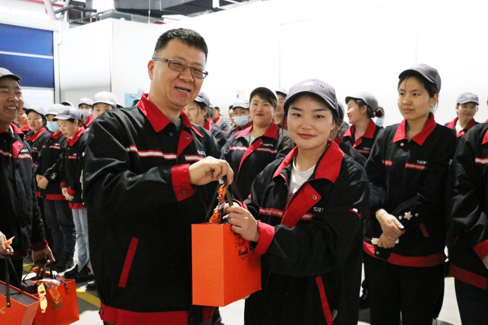 禮品發放現場,每位女職工臉上都洋溢著愉悅之情。一句溫暖的祝福、一份簡單的禮品蘊含著公司對廣大女職工的深刻關懷與感激之情,彰顯了鑫可傳動“以人為本”的經營理念,也進一步增強了員工的歸屬感、向心力,激發了員工愛崗敬業的無限熱情。