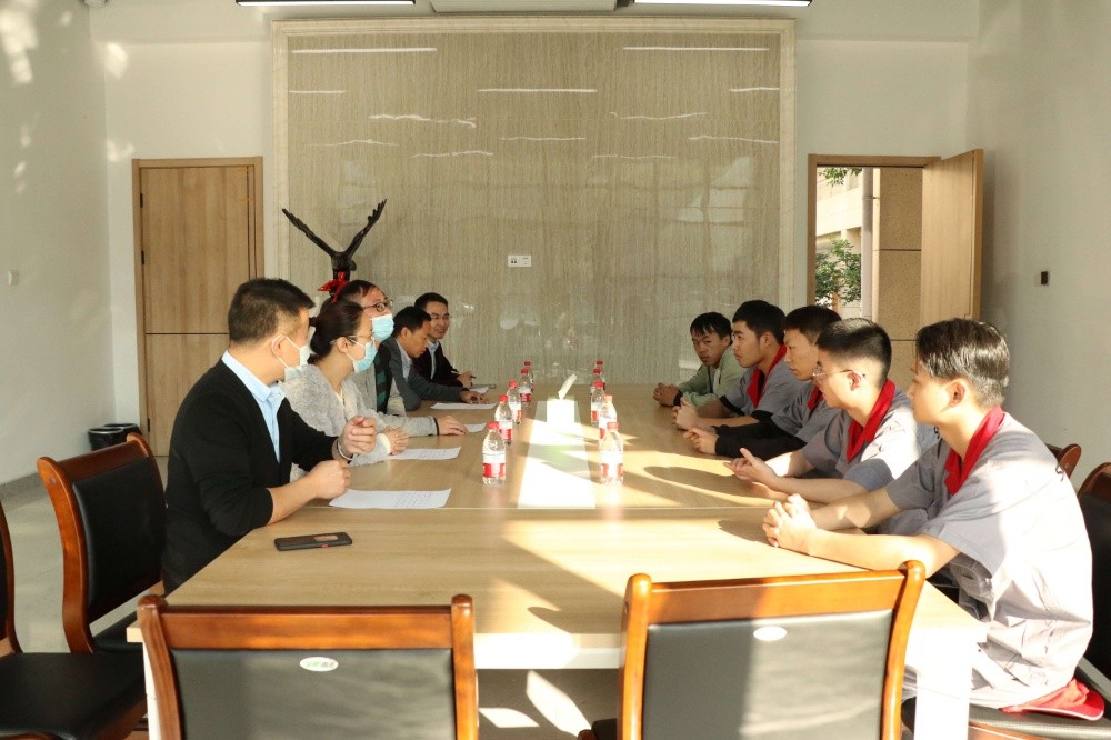 座談會伊始,陳光耀副總經理對老師們特來看望和慰問實習生表示熱烈歡迎,并向學校詳細介紹了學生們的實習培訓情況和生活情況他說,兩個多月來同學們努力好學積極上進,已初步掌握了司產品生產過程、制造工藝產品檢驗規則等多項技能寄語實習生,希望他們腳踏實地、不怕辛苦主動學習,快速去適應崗位工作要求把工作崗位當作最好的老師,多學習、多思考多嘗試成長的機會永遠是留給有準備的人。